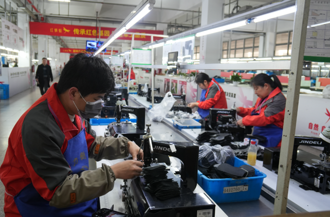 “我们从正月初十开始复工复产,并为每一位员工发放了返岗补贴与开工伴手礼,当天到岗员工达到85%。”红蜻蜓永嘉生产总经理张国运说,当前企业订单充足,新春订单已经排今年10月份,意向订单已经排明年的2月份。去年,红蜻蜓永嘉生产车间实际生产鞋履260万双,今年计划生产360万双,力争产量同比提高38%,奋力夺取“全年红”。