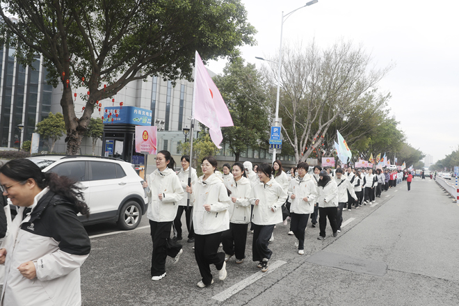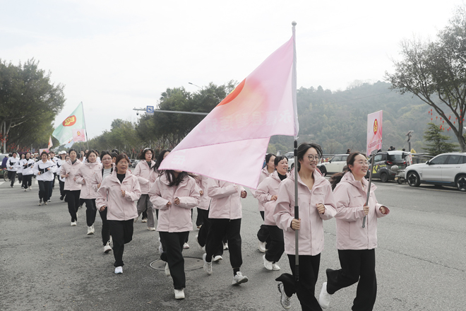 随着开跑口令响起,由全县66个机关企事业单位组建的61支健身跑队伍从永嘉县体育馆出发,绕城3.8公里。近千名女性精神抖擞、步伐矫健,加油声、口号声此起彼伏,汇成春日里最动人的乐章,充分展现了永嘉女性昂扬向上、奋发有为的精神面貌。