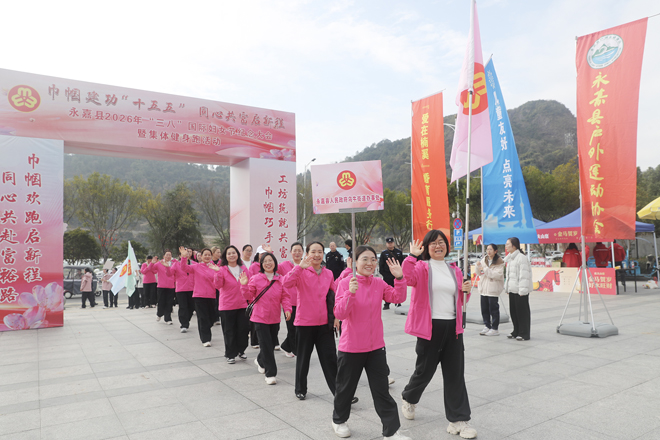 3月4日上午,我县举行2026年“三八”国际妇女节纪念大会暨“巾帼建功‘十五五’同心共富启新程”集体健身跑活动。县领导周旭丹、汪金琰、朱佩珍出席活动。