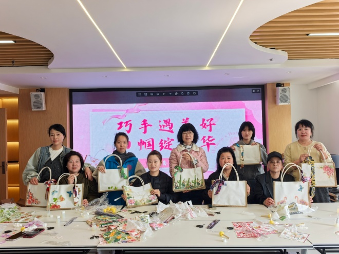 3月6日,三八国际妇女节将至,春意盎然、万物复苏之际,永嘉县助联体在永嘉县慈善基地,组织妇女组成小组,开展自制帆布包贴画、多肉花篮等各类手工活动,为小组成员提供暖心服务。