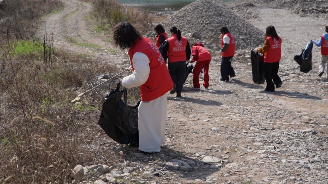 清理家门口的母亲河也是她们的常规志愿活动。志愿者章小珍说:“巽宅这条河是我们的母亲河,我们经常出来清理,大家一起动手,把母亲河保护干净。”
