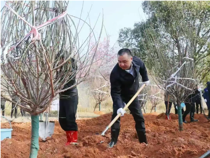 初春的楠溪江畔草木初萌、春意盎然。今天上午9时许,县领导和人才代表一行抵达植树点后,迅速分组投入劳动,大家默契配合、分工协作,挥锹铲土、扶正树苗、回填压实、提水浇灌,每一个环节都认真细致、规范有序。经过一个多小时的辛勤劳作,数十棵新树苗迎风挺立,为初春的楠溪大地增添了丝丝春意。植树间隙,县委书记吴呈钱询问了解树木品种、生长周期,察看植树造林的后期管护工作,叮嘱相关部门要精准施策、科学谋划,因地制宜选择适生树种,加强后续管护和技术指导,确保“栽一棵活一棵,植一片绿一方”。