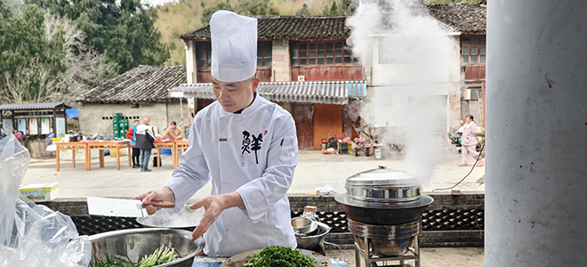 但对他来说,技能最大的价值,是给他人送来温暖。“最多的一次是在云岭乡,做了35桌,也是重阳节。”叶可东说,“每逢传统佳节,老人更需要关怀。现在子女常年在外打拼,村里多是留守老人,有些生活不便,我们更要体贴,把这份热心传递出去。”
