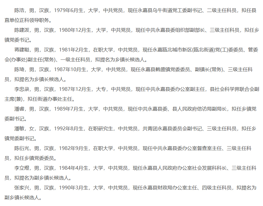 拟提拔任用县管领导干部名单