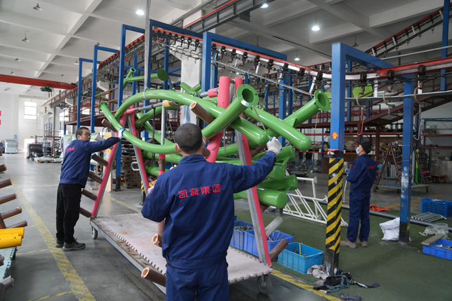焊接、喷漆、组装......走进企业车间,工人们正在各自的岗位上忙碌着。“我们正月初八正式开工,目前员工已全员到岗。”凯奇集团交付中心总经理蒲朝伟说,今年整个订单非常饱满,生产任务已经排到5月底。