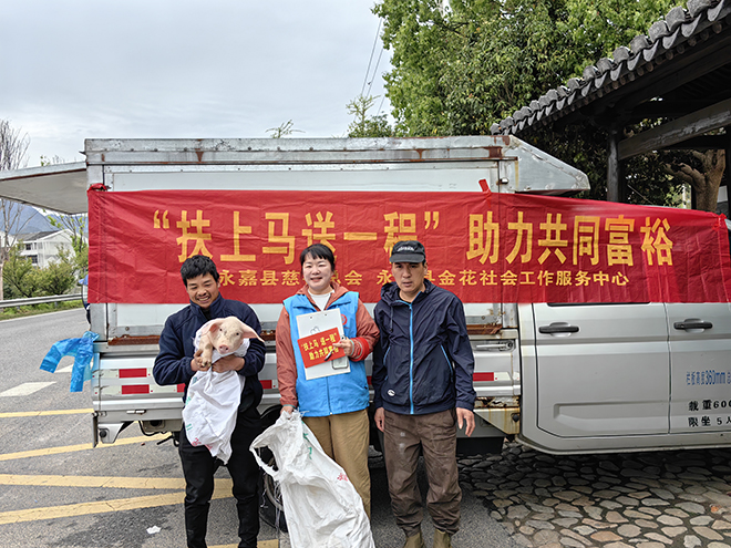 4月8日,由永嘉县金花社会工作服务中心与永嘉县慈善总会联合开展的2025年“扶上马送一程”助力共同富裕项目,组织工作人员与志愿者,满载健康猪仔,辗转多地,为枫林镇娄山村、东城街道山仓村、全安村以及籴米山自然村、桥下镇昆阳社区的7户农户送去14头猪仔。