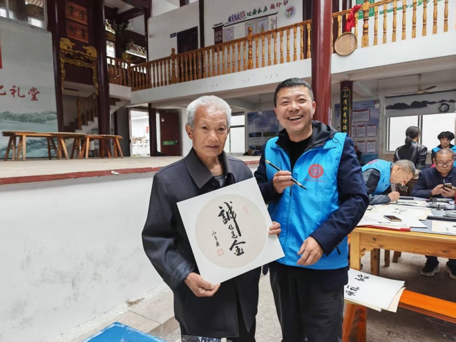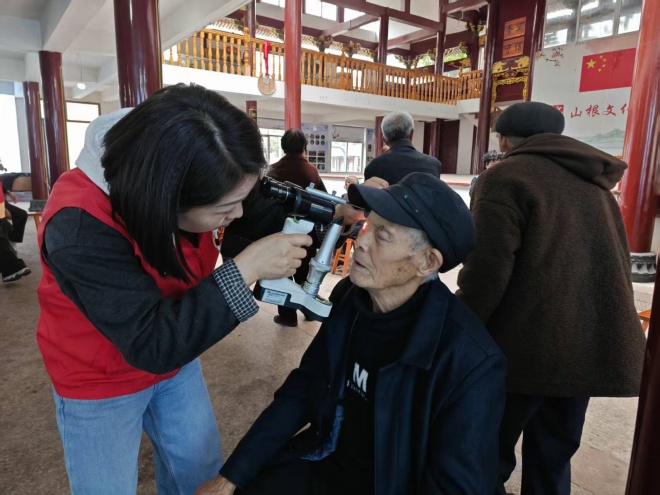 书法志愿者挥毫泼墨,围绕家风家训、春日安康主题,书写“诚信是金”“家和业兴”等书法作品,每一幅作品都承载着美好祝福,深受村民喜爱,大家纷纷排队索要,现场氛围热烈;健康理疗摊位上,志愿者结合春季养生特点,为村民提供颈肩腰腿痛精准按摩,并讲解日常养生技巧;乐清湖头医院志愿者则通过专业仪器,为村民筛查白内障眼科疾病、解答视力保护疑问,守护村民的“视界”健康;爱心衣物发放区,志愿者热情协助村民挑选合身衣物,贴心服务让村民倍感温暖;义剪摊位上,专业理发师根据村民需求修剪发型,边理发边拉家常、传常识,让村民足不出村就能享受便捷服务,赢得一致称赞。