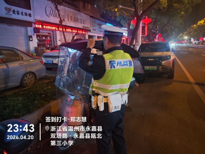 4月20日当晚23时许,整治行动正式拉开帷幕。针对夜间电动自行车违法加装遮阳伞、不按规定佩戴安全头盔,以及机动车酒驾醉驾、乱停乱放等突出交通违法行为,中队采取定点设卡与流动巡查相结合的方式,精准发力、从严查处。在双塔路重点路段,执勤民辅警一边对过往电动自行车进行检查,现场拆除违法加装的遮阳伞,向驾驶人讲解此类装置在夜间行驶时易遮挡视线、引发事故的安全隐患;一边引导机动车驾驶人接受酒精检测,对过往车辆进行逐一排查,严查酒醉驾等严重交通违法行为。